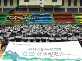 진안군이 26일 오후 진안문예체육회관에서 군민 500여 명과 주요 내빈이 참석한 가운데 ‘진안양수발전소 유치 성공기원 범군민 결의대회’를 성황리에 마무리하고, 유치 성공에 대한 강력한 의지를 대내외