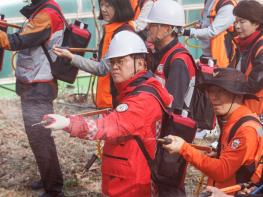 건조한 날씨와 강풍으로 산불 우려가 커지는 가운데 서울 강서구(구청장 진교훈)가 25일(수) ‘유관기관 합동 산불진압훈련’을 열고 기관별 협조체계를 점검했다. 진교훈 구청장도 현장을 찾아 훈련 전 과