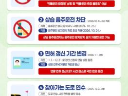 경찰청은 도로 위 교통안전은 높이고, 국민이 겪는 불편은 줄이는 내용의 도로교통법령을 내년부터 시행한다. 최근 마약뿐만 아니라 프로포폴, 졸피뎀 등 향정신성의약품에 취해 운전하여 국민의 생명을 위