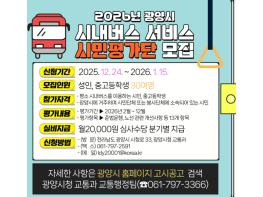 광양시가 시내버스 서비스 품질 향상과 시민 만족도 제고를 위해 시민이 직접 참여하는 ‘시내버스 서비스 시민평가단’을 모집한다.시민평가단은 성인과 중·고등학생 30명 내외로 구성되며, 2026년 2월부터