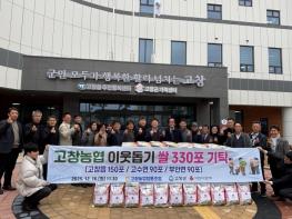 고창농협(조합장 유덕근)이 16일 오전 고창읍주민행복센터에서 고창읍 150포, 고수면·부안면 각각 90포씩 총 330포(1100만원 상당)를 기부하며 따뜻한 나눔을 실천했다.기탁된 백미는 고창읍, 고수면, 부안