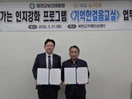 화천군 보건의료원의 치매 예방 사업이 민관협력을 통해 한층 업그레이드된다. 화천군 보건의료원은 지난달 31일 센터에서 시니어 토탈케어 기업인 ㈜대교 뉴이프와 치매 고위험군 어르신들의 인지건강 증진