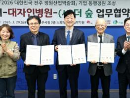 체류형 관광명소로 탈바꿈한 전주덕진공원에 대자인병원 정원이 조성된다. 전주시와 대자인병원(이사장 이병관), 사단법인 더숲(대표 정명운)은 20일 시청 3층 소회의실에서 ‘2026 대한민국 전주정원산업박