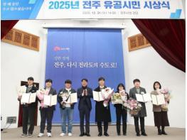 전주시가 강한 경제도시 구현과 전주의 대변혁을 위해 힘쓴 시민들에 대한 시상을 끝으로 2025년 한해를 따뜻하게 마무리했다. 시는 31일 시청 강당에서 우범기 전주시장을 비롯한 공무원과 유공시민 등 30