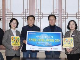 (사)함께하는세상 삼우보호작업장은 평택행복나눔본부에 전기매트 200개(2,000만원 상당)를 전달했다. (사)함께하는세상 삼우보호작업장은 장애인이 경제적인 의존으로부터 자립할 수 있도록 안정된 고용기