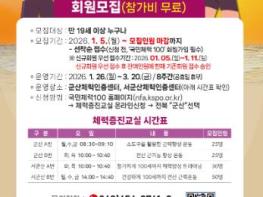 군산체력인증센터가 2026년 1기 체력증진교실 수강생을 모집한다고 8일 밝혔다.운영 기간은 1월 26일부터 3월 20일까지 8주이며, 1기 체력증진교실은 월요일부터 금요일까지 총 4반(군산 A·B / 서군산 A·B)