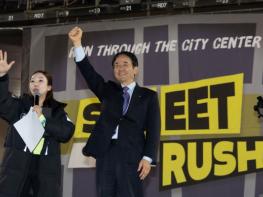 이동환 고양특례시장이 지난 15일 열린 ‘2025 고양 스트릿 러쉬 in 라페스타’에서 “불빛과 사람이 가득한 도심 속을 시원하게 질주하며 열정 가득한 순간을 만끽하길 바란다”고 말하고, 선수들의 레이스