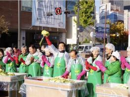 서울 성북구가 11월 12일, 성북구청 앞 바람마당에서 2025년 월동기 소외계층 사랑나누기(김장) 행사를 열었다. 이날 행사에는 150여 명의 새마을부녀회원과 220여단 군 장병이 어려운 이웃 700세대에 나누