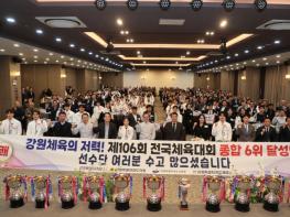 강원특별자치도는 11월 10일 오후 2시 20분 춘천 스카이컨벤션에서 제106회 전국체육대회 강원선수단 환영행사를 개최했다. 이날 행사에는 김진태 강원특별자치도지사, 김시성 강원도의회 의장, 신경호 도