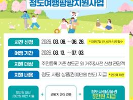청도군이 지난해 참여자들의 높은 만족도를 확인한 '청도 여행 팡팡 지원사업'을 내실 있게 준비하여 올해 두 번째 사업을 본격적으로 추진한다. '청도 여행 팡팡 지원사업'은 관광객 유치를 통해 지역 내