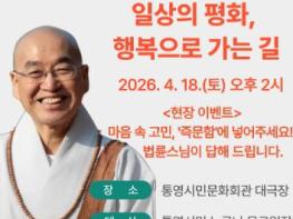 통영시는 오는 4월 18일 오후 2시, 통영시민문화회관 대극장에서 '평생학습도시 통영, 2026년 시민과 함께하는 명사초청 강연'의 두 번째 순서로 법륜스님을 초청해 명사 특강을 개최한다.평화재단 이사장이