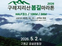 전남 구례군은 아름다운 자연환경을 배경으로 한 ‘제1회 구례 지리산봄길 마라톤대회’가 오는 5월 2일 구례공설운동장에서 개최된다고 밝혔다.이번 대회는 오마이뉴스 광주전라본부와 구례군육상연맹이 주