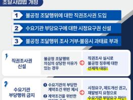<조달사업법 개정>① 불공정 조달행위에 대한 직권조사권 도입② 수요기관 부당요구에 대한 시정요구권 신설③ 불공정 조달행위 조사 거부·불응시 과태료 부과1. 직권조사권 신설불공정 조달행위 의심의 상