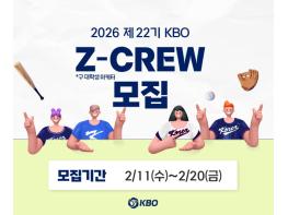 KBO가 2월 11일(수)부터 2026 제 22기 KBO Z-CREW(제트크루)를 모집한다.KBO Z-CREW는 기존 ‘대학생 마케터’에서 명칭을 변경하고, 콘텐츠 제작 중심이 아닌 KBO 리그 전반에 참여하는 활동으로 운영 방향