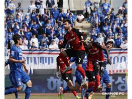 김해FC2008이 지난 21일 오후 2시 김해종합운동장에서 열린 ‘하나은행 K리그2 2026’ 4라운드 홈 경기에서 수원에 0대3으로 패했다. 결과는 아쉬웠지만, 경기장을 가득 메운 팬들의 뜨거운 열기는 김해의