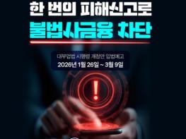 한 번의 피해신고로 불법사금융 차단- 대부업법 시행령 개정안 입법예고 2026년 1월 26일~3월 9일■ 불법사금융 피해자가 보다 수월하게 피해를 신고하고 지원을 받을 수 있도록 입법예고를 실시합니다.- 국