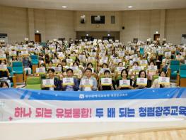 광주시교육청과 국민권익위원회 청렴연수원은 15일 광주시교육청교육연수원 대강당에서 4급 이상 공직자, 학교장, 부패취약분야 담당자 등 550여 명을 대상으로 ‘2025년 청렴라이브(Live) 교육’을 진행했