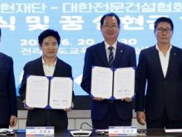 (재)전남교육 꿈실현재단과 대한전문건설협회 전라남도회는 20일 전라남도교육청 5층 상황실에서 전남 지역 기술 인재 육성을 위한 업무협약을 체결했다. 양 기관은 이번 협약을 통해 ▲‘꿈 실현금’ 대상