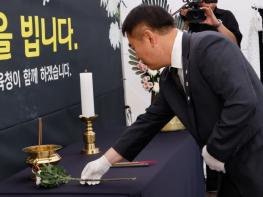 광주시교육청은 27일 본청 이음광장에 마련된 제주 중학교 교사를 위한 추모 공간에서 추모식을 진행했다. 이날 추모식에는 이정선 교육감을 비롯해 시교육청 간부 공무원이 참석해 숨진 교사를 애도하고,