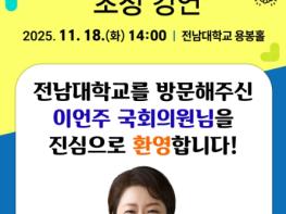 이언주 국회의원이 전남대학교 용봉포럼에서 한미 산업동맹의 흐름 속에서 호남경제의 새로운 성장 전략과 산업적 돌파구를 모색한다.14일 전남대학교(총장 이근배)에 따르면, 오는 11월 18일 오후 2시, 대
