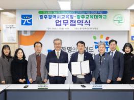 광주시교육청과 광주교육대학교가 교육·보육 전문가 양성을 위해 함께 힘을 모은다.이정선 시교육감과 허승준 총장은 13일 시교육청 상황실에서 ‘유보통합 연수 운영 업무협약’을 체결했다. 이번 협약은