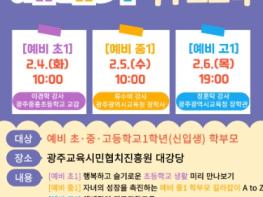 광주교육시민협치진흥원은 오는 2월 4~6일 원내 대강당에서 초·중·고등학교 신입생 자녀를 둔 학부모를 대상으로 ‘2025 학교급별 새내기 학부모교육’을 운영한다.이번 교육은 자녀들의 학교생활 적응을 돕