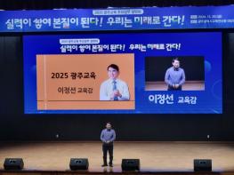 ‘실력이 쌓여 본질이 된다, 우리는 미래로 간다‘광주시교육청이 2025년 광주교육 방향을 제시했다.시교육청은 20일 광주광역시교육연수원 대강당에서 학교장 및 주요 기관장 등 1천여 명이 참석한 가운데