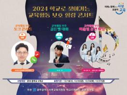 광주서부교육지원청은 오는 18일부터 27일 서구, 남구, 광산구지역 4개 중학교에서 ‘학교로 찾아가는 교육활동 보호 힐링 콘서트’를 개최한다.이번 콘서트는 ‘안전하고 행복한 학교 문화 조성’을 주제로