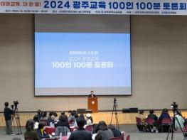 광주교육시민협치진흥원은 16일 김대중컨벤션센터 다목적홀에서 ‘2024 광주교육 100인 100분 토론회’를 개최했다.‘광주미래교육 더 한 발!’을 주제로 열린 이번 토론회는 학생, 학부모, 교직원, 시민 10
