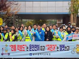 광주시교육청은 26일 장덕초등학교 일대에서 안전한 등하굣길 조성을 위한 캠페인을 진행했다. 이번 캠페인에는 이정선 교육감을 비롯해 광주서부교육지원청, 장덕초등학교, 광산구청, 광주광산경찰서 및 전