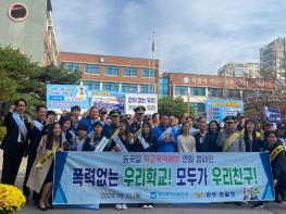광주시교육청은 31일 광주경찰청과 함께 서구 만호초등학교 정문에서 ‘학생·학부모·교직원 및 지역사회가 참여하는 학교폭력 예방 캠페인’을 실시했다. 이번 캠페인은 이정선 교육감, 박성주 광주경찰청장