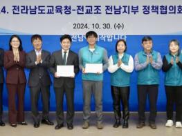 전라남도교육청과 전국교직원노동조합 전남지부는 30일 전라남도교육청 중회의실에서 노사 양측 관계자들이 참석한 가운데 ‘2024년 하반기 정책협의회 체결식’을 가졌다.노·사 양측은 이번 정책협의를 통