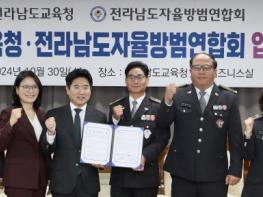 전라남도교육청과 전라남도자율방범연합회는 30일 전라남도교육청에서 안전한 지역 교육환경 구축을 위한 업무협약을 체결했다. 전라남도자율방범연합회는 ‘함께하는 봉사! 아름다운 동행!’을 슬로건으로