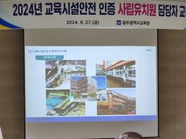 광주시교육청은 지난 27일 광주교육시민협치진흥원 대강당에서 교육시설안전 인증 대상 130개 사립유치원 담당자 200여 명을 대상으로 ‘2024년 교육시설안전 인증 사립유치원 담당자 교육‘을 실시했다.교