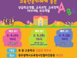 광주시교육청시민협치진흥원은 오는 2월 4~6일 본원 대강당에서 초·중·고등학교 신입생 학부모를 대상으로 ‘2026년 새내기 학부모교육’을 운영한다.이번 교육은 학부모들에게 학교급별 교육과정과 교육정