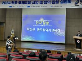 광주시교육청이 지난 25일 오후 3시 광주창의융합교육원 대강당에서 광주 소재 여행업체 대상 ‘2024 광주 국제교육 사업 및 용역 입찰 설명회’를 개최했다.26일 시교육청에 따르면 사업 설명회는 국제교육