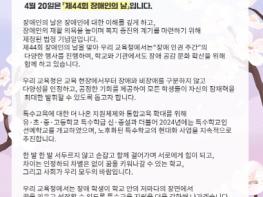 광주시교육청이 제44회 장애인의 날을 맞아 오는 15일부터 26일까지 2주간 전체 기관과 학교에서 ‘2024 장애 인권 주간’을 운영한다고 8일 밝혔다.이번 장애 인권 주관은 8일 이정선 교육감의 장애공감 문