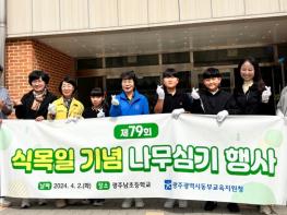 광주동부교육지원청이 지난 2일 제79회 식목일을 기념해 광주남초등학교에서 나무심기 행사를 개최했다. 3일 동부교육지원청에 따르면 식목 행사는 학생과 함께 하는 나무심기로 기후위기 극복을 위한 환경