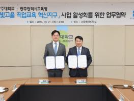 광주시교육청은 21일 ‘빛고을 직업교육 혁신지구’ 사업 활성화를 위해 광주대학교와 업무협약을 체결했다. 시교육청에 따르면 이번 협약을 통해 광주대는 빛고을 직업교육 혁신지구 사업의 미래형운송기기