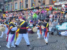 2024년 민주ㆍ인권ㆍ평화통일 국제교류 학생들이 12일 독일 뒤셀도르프 시내에서 열린 카니발 퍼레이드에 참가했다.14일 광주광역시교육청에 따르면 뒤셀도르프 카니발은 유럽 최대 거리 축제 가운데 하나다