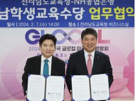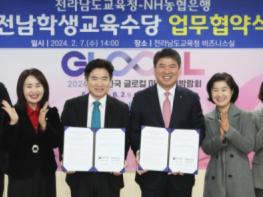 전라남도교육청과 농협은행이 전남학생교육수당의 안전하고 편리한 운영 시스템을 마련하기 위해 맞손을 잡았다.전남교육청은 7일 전라남도교육청 비즈니스실에서 농협은행과 전남학생교육수당 바우처카드(
