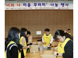 전라남도교육청은 13일 청사 내 교육지원센터에서 직원 40여 명이 참여한 가운데 ‘너와 나 이음 꾸러미’ 나눔 행사를 가졌다. 이 행사는 연말을 맞아 직원들의 사랑과 나눔 마음을 도내 학생 가장 및 위탁