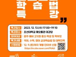 광주시교육청이 오는 13일 17시 조선대학교 해오름관에서 예비 고1(현 중3) 학생 및 학부모 대상 ‘고교 국어·수학·영어 교과학습법 특강’을 개최한다.10일 시교육청에 따르면 이번 특강은 수시와 정시의