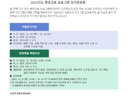 광주학생교육문화회관이 오는 14~16일 올해 한 해 동안 진행한 평생학습 프로그램의 성과물을 전시·체험할 수 있는 ‘2023년도 평생교육 프로그램 성과공유회’를 개최한다. 5일 학생교육문화회관에 따르면