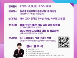광주시교육청이 오는 9일 14시 광주광역시교육연구정보원 대강당에서 ‘EBS 대표강사 초청 중3(예비 고1) 학생 및 학부모 대상 입시설명회’를 개최한다.5일 시교육청에 따르면 이번 설명회는 지역 간 대입