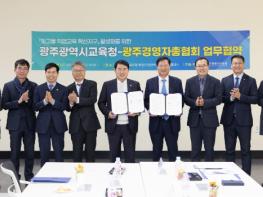 광주시교육청이 지난 5일 ‘빛고을 직업교육 혁신지구’ 사업 활성화를 위해 광주경영자총협회와 업무협약을 체결했다. 6일 시교육청에 따르면 ‘빛고을 직업교육 혁신지구’ 사업은 우리 지역 새내기 기술