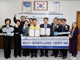 광주시교육청은 6일 광산구청 청장실에서 이정선 교육감, 박병규 광산구청장 등이 참석한 가운데 ‘광일고등학교 학교복합시설 조성을 위한 기본 협약’(MOU)을 체결했다.이번 협약은 교육부가 추진하는 ‘2