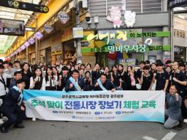 광주시교육청이 지난 9월27일 추석 명절을 맞아 말바우시장에서 전통시장 장보기 체험 교육을 진행했다.3일 시교육청이 따르면 이번 전통시장 체험 교육은 금호중앙여고와 전대사대부고 학생 100여 명이 참