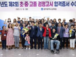광주시교육청이 지난 19일 오전 10시에 본청 대회의실에서 ‘2023년도 제2회 초·중·고졸 검정고시 합격증서?수여식’을 개최했다. 20일 시교육청에 따르면 이정선 교육감은 어려운 여건 속에서도 배움의 끈