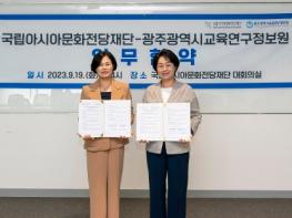 광주교육연구정보원이 국립아시아문화전당재단과 문화예술 기반 AI·SW 특화 융합교육(STEAM) 콘텐츠 활성화를 위한 업무협약을 지난 19일 ACC재단 대회의실에서 체결했다.?정보원에 따르면 이번 협약을 통해